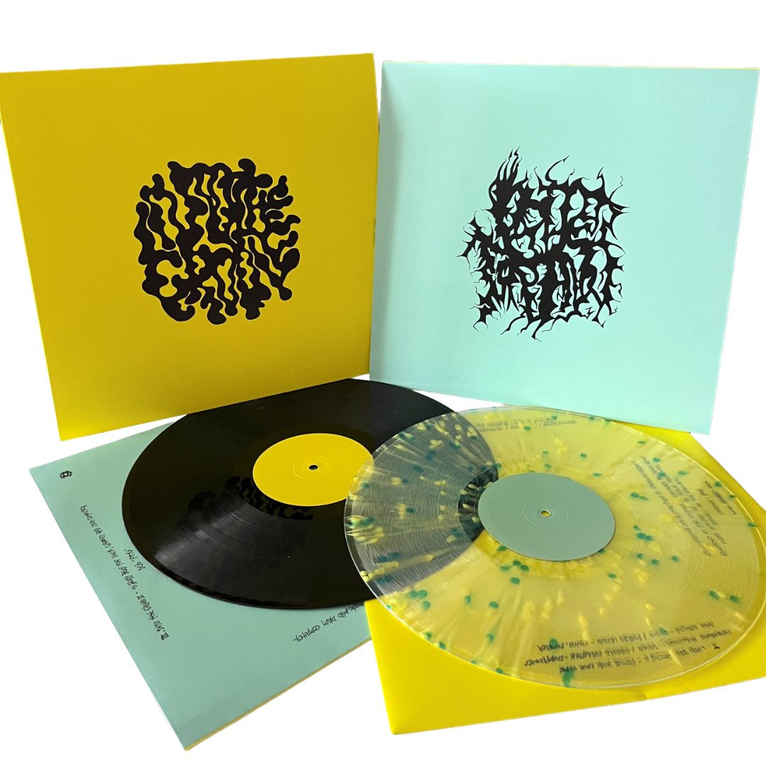 normal black vinyl and transparent splatter with yellow and turquise dots...